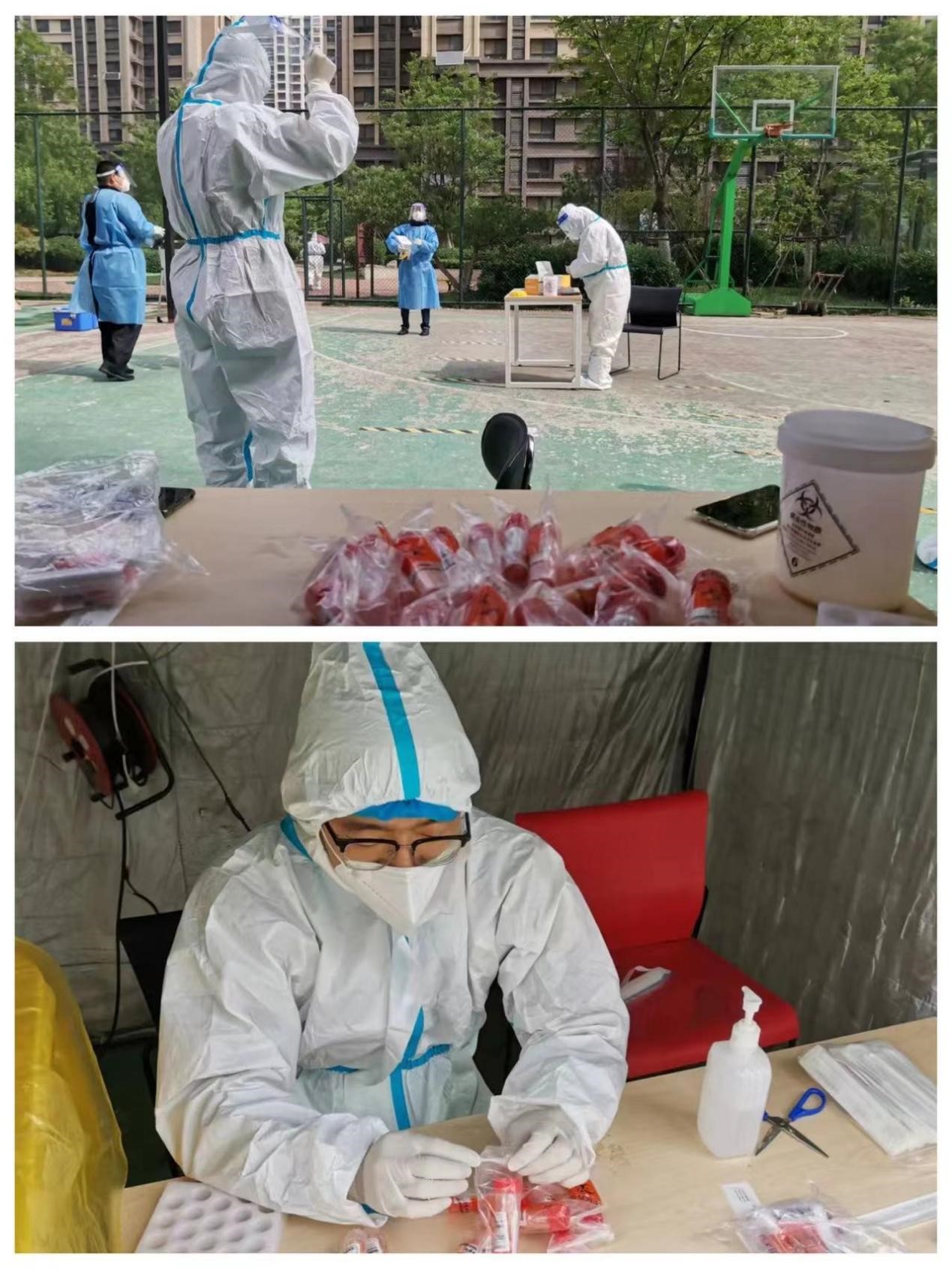 社區(qū)疫情防控情況復(fù)雜,工作量巨大,但沈俊峰始終保有退伍軍人的正直秉性,帶領(lǐng)兩位年輕人沖鋒在前。到崗第二天,三名下沉社區(qū)人員就立即投入工作狀態(tài),協(xié)助社區(qū)嚴(yán)格落實(shí)每一個(gè)居民應(yīng)檢盡檢,從早上7點(diǎn)到晚上11點(diǎn),連續(xù)工作十多個(gè)小時(shí),完成近3000人的核酸檢測(cè)工作。