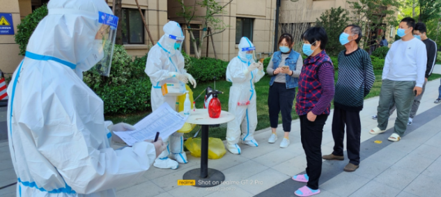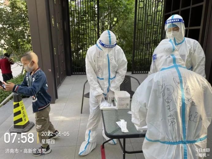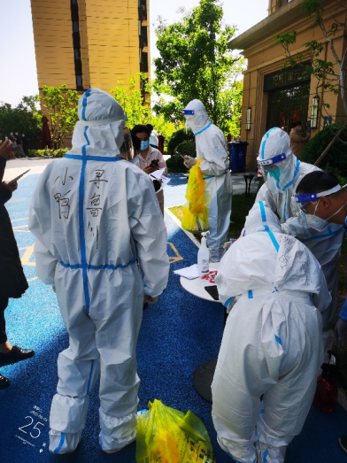 由于一直在高溫下“全副武裝”,志愿者的防護服早已被汗水浸濕,手掌被泡得發(fā)白,臉上也被口罩勒出了痕跡,更有志愿者出現(xiàn)了頭暈、流鼻血等中暑癥狀。盡管如此,他們也是稍加休整,便再次沖鋒向前。休息時間,志愿者們席地而坐,匆匆吃完奔赴崗位,因忙碌而錯過飯點更是常事,然而他們卻從未有過怨言;腰肌勞損、椎間盤不好的團隊干部即使腰疼的直不起來,也依舊抵擋不住他助力抗疫的熱情與行動。……小鴨志愿者尋魯川在協(xié)助核酸檢測時,有一個小男孩很不配合,由于當(dāng)天的核酸檢測并沒有貼紙,男孩媽媽便偷偷準(zhǔn)備了小貼畫,拜托尋魯川給小朋友貼上。尋魯川很感動,并且樂意幫忙,尋魯川說:“他兩只大眼睛直勾勾的盯著貼紙看,特別萌,心都被萌化了,真是開心了一整天,所有的疲憊都一掃而空?!?nbsp;…… 在抗“疫”前線,小鴨人和社區(qū)居民們互相理解,互相配合,如此令人感動又暖心的事跡不勝枚舉。
