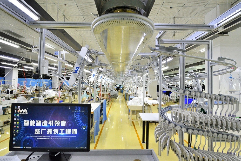 除了面料染色的智能化改造,圍繞服裝的設(shè)計(jì)、研發(fā)、生產(chǎn),元首集團(tuán)也正在加快變革,通過(guò)探索和引進(jìn)自動(dòng)化縫制單元、智能吊掛系統(tǒng)、柔性整燙系統(tǒng)、自動(dòng)立體倉(cāng)儲(chǔ)和物流配送系統(tǒng),建立生產(chǎn)流程的MES系統(tǒng)管理,提高生產(chǎn)效率。