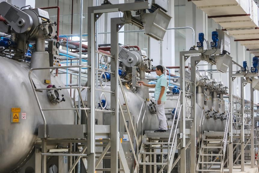 在元首集團(tuán)針織服裝產(chǎn)業(yè)園,引人注目的不僅是產(chǎn)業(yè)變革和調(diào)整,更有智能化升級(jí)后的質(zhì)量提升。其中,面料印染作為服裝生產(chǎn)研發(fā)的關(guān)鍵環(huán)節(jié),更能體現(xiàn)出企業(yè)科技創(chuàng)新實(shí)力和綠色發(fā)展水平,也是激活新舊動(dòng)能轉(zhuǎn)換的“主引擎”。
